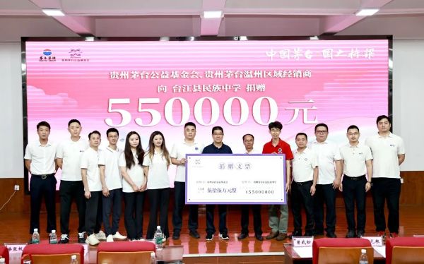 6月23日,贵州茅台公益基金会携手贵州茅台温州经销商开展“中国茅台·国之栋梁”——筑梦未来·宏志助学公益项目,向台江县民族中学捐赠55万元,扶智亦扶志,坚定践行“国之栋梁”培养承诺。