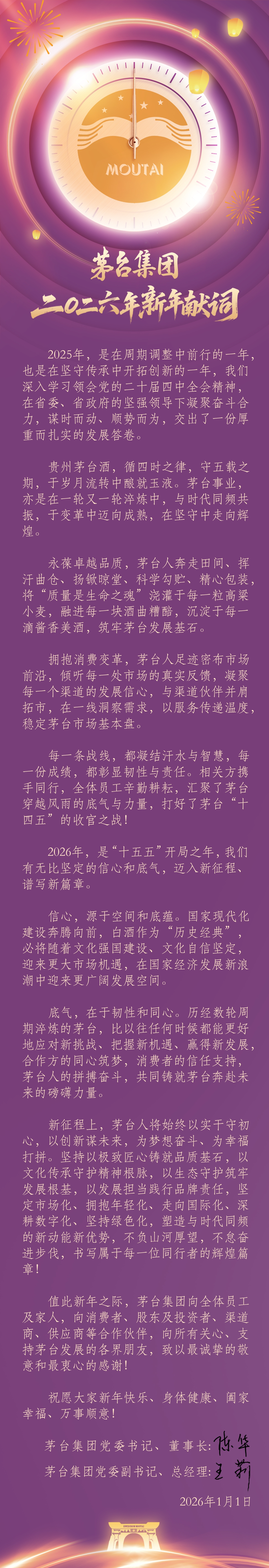 "黄瓜视频在线观看入口网站" 茅台集团2026年新年献词